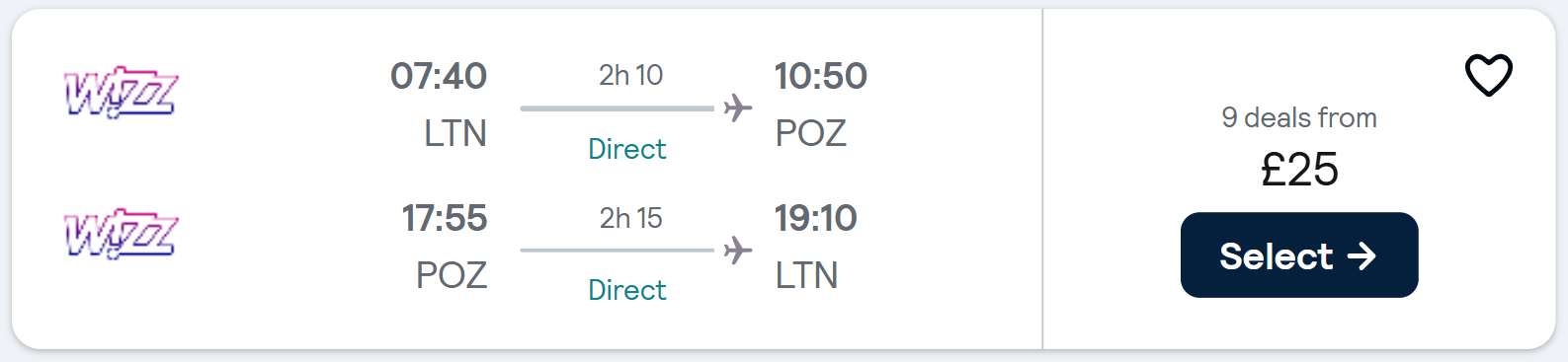 We recommend you book this deal through Wizz Air's official website. To see this deal on Skyscanner.net, click here.
