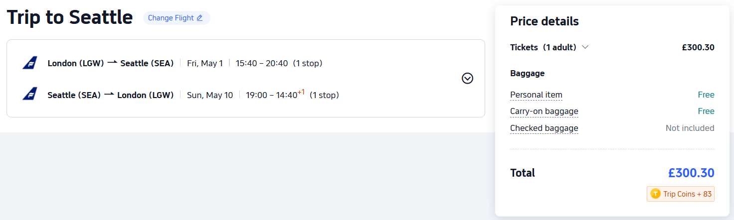 Trip.com offers the cheapest price for this flight. To book this deal on Trip.com, click here.