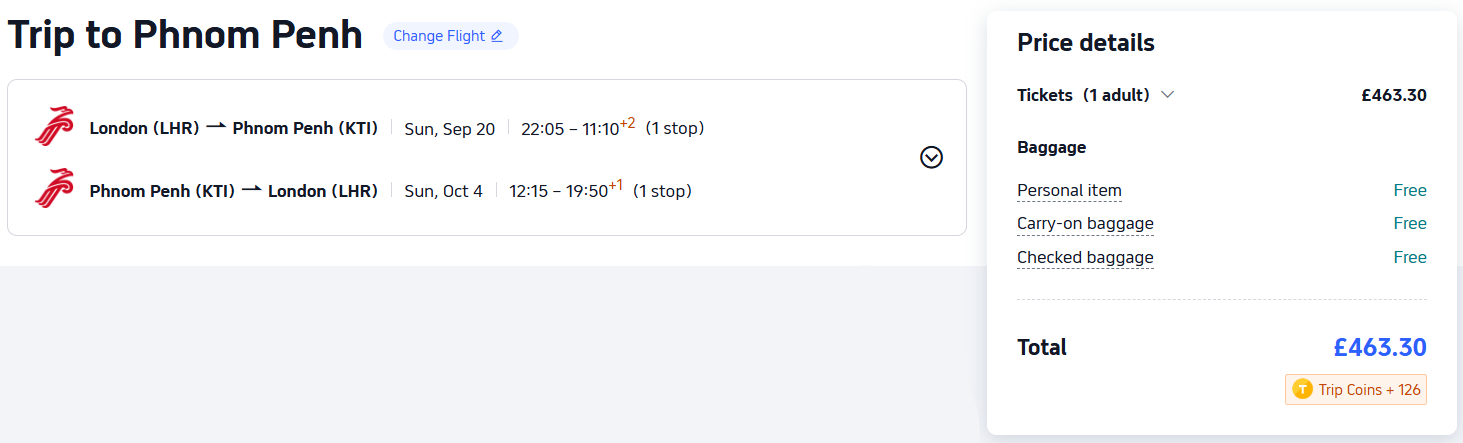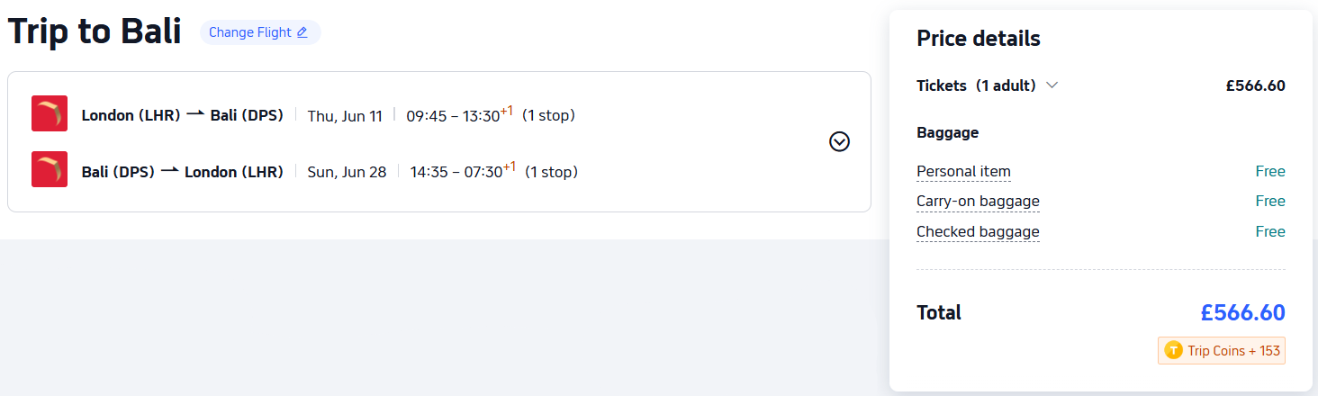 Trip.com is the cheapest provider for this flight. To book this deal on Trip.com, click here.