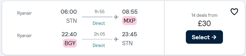 We recommend you book this deal directly through Ryanair's website, as it's the cheapest option available. To book this deal, select the flight on Skyscanner (click here).
