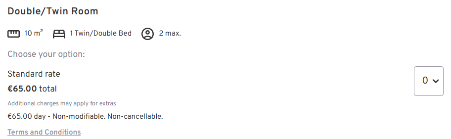 A double room is around 68€ (£54) per night for two people on the hotel's official website (click here), which is an incredible deal.