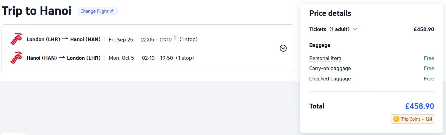 Trip.com is the cheapest provider for this flight. To book this deal on Trip.com, click here.