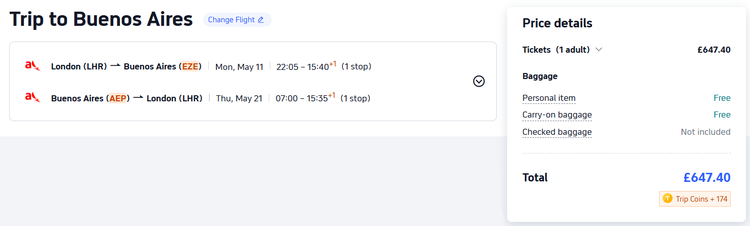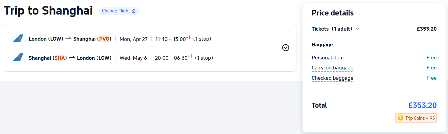 Trip.com is the cheapest provider for this flight. To book this deal on Trip.com, click here.