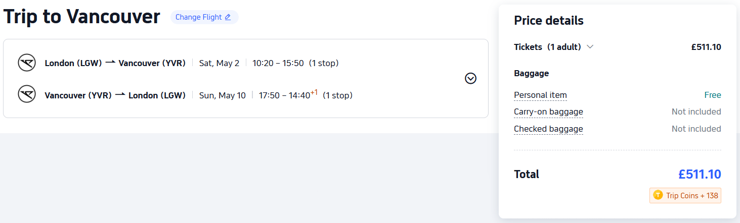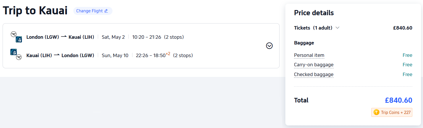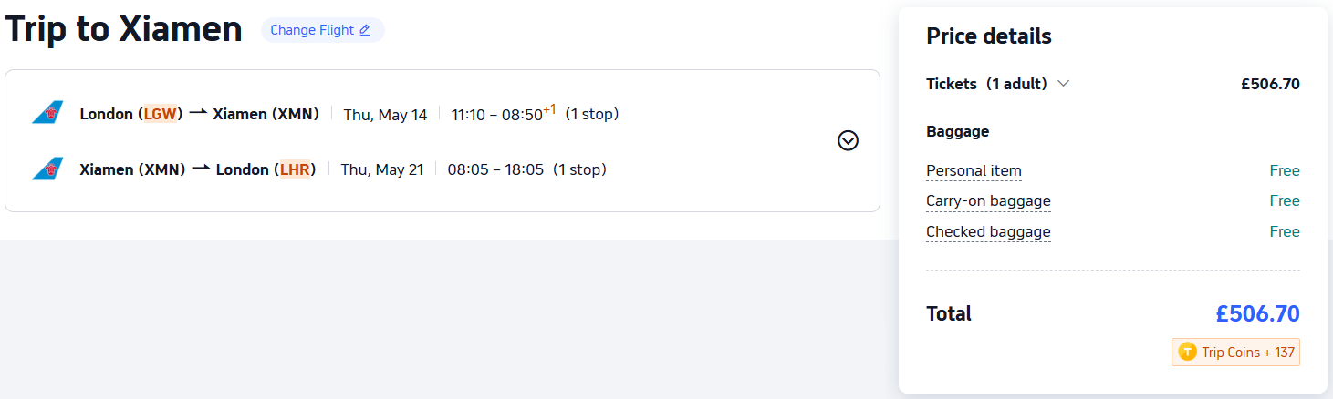 Trip.com is the cheapest provider for this flight. To book this deal on Trip.com, click here.