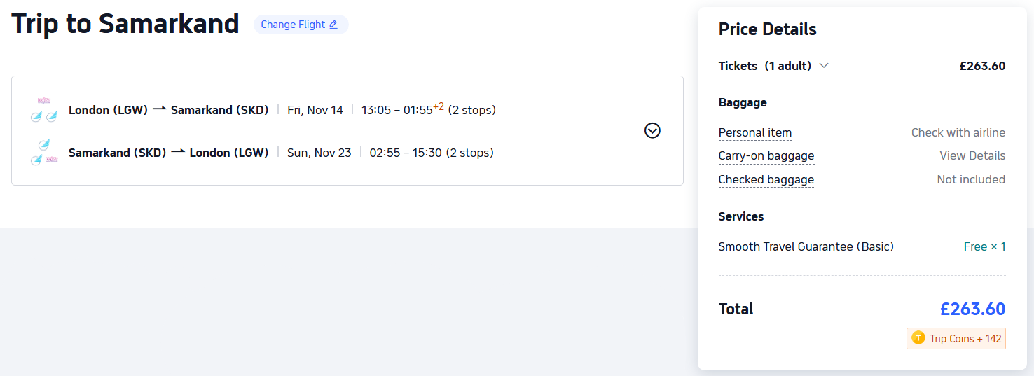 Trip.com is the cheapest provider for this flight. To book this deal on Trip.com, click here.