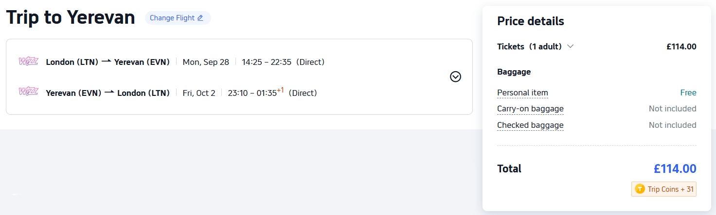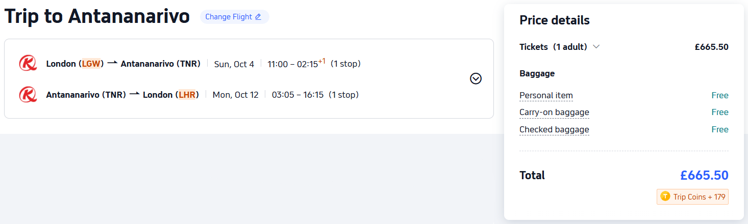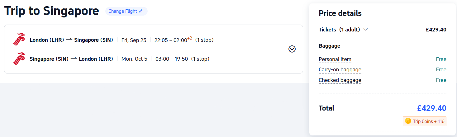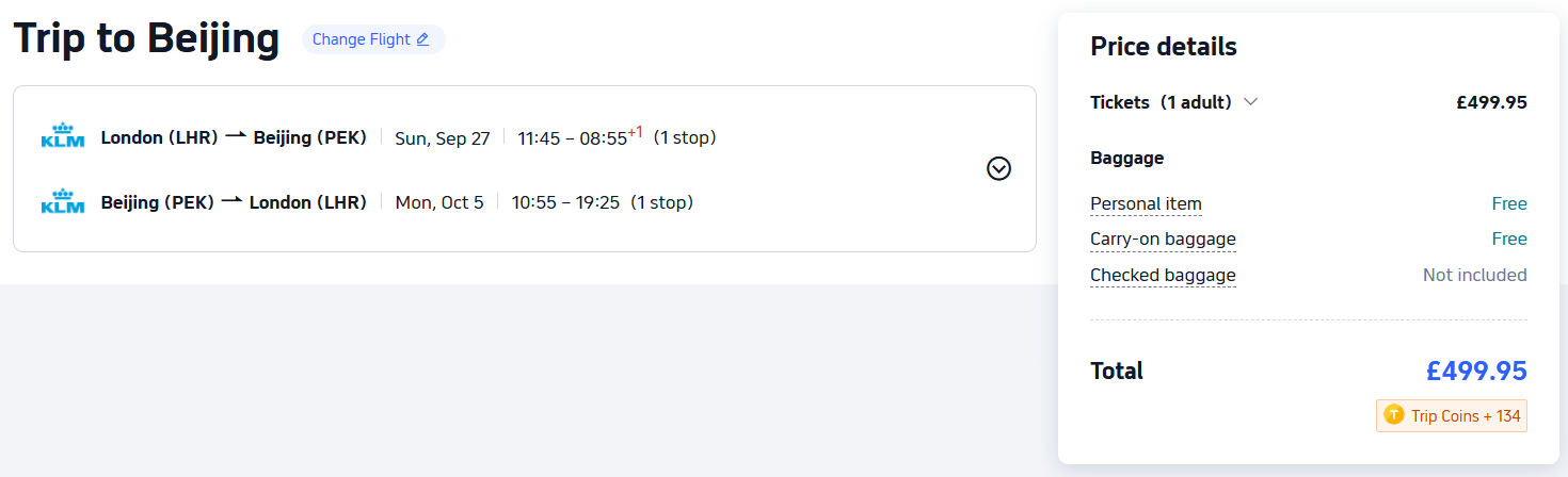 Trip.com is the cheapest provider for this flight. To book this deal on Trip.com, click here.