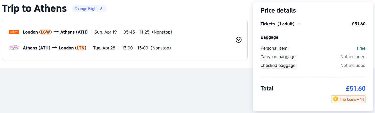 Trip.com is the cheapest provider for this flight. To book this deal on Trip.com, click here.