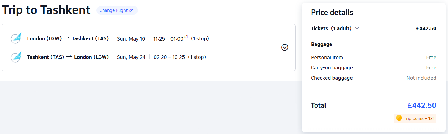 Trip.com is the cheapest provider for this flight. To book this deal on Trip.com, click here.
